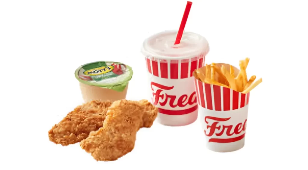 Yes, Freddy’s kids menu includes a 2-Piece Chicken Tenders Combo, made with crispy, seasoned white meat chicken strips. These tenders are kid-sized and easy to eat, with a crunchy exterior and tender inside. You can pair them with Freddy’s famous fry sauce, ranch, honey mustard, or BBQ sauce. While they don’t offer traditional “nuggets,” these tenders are a better, meatier alternative and remain a favorite among younger Freddy’s guests.